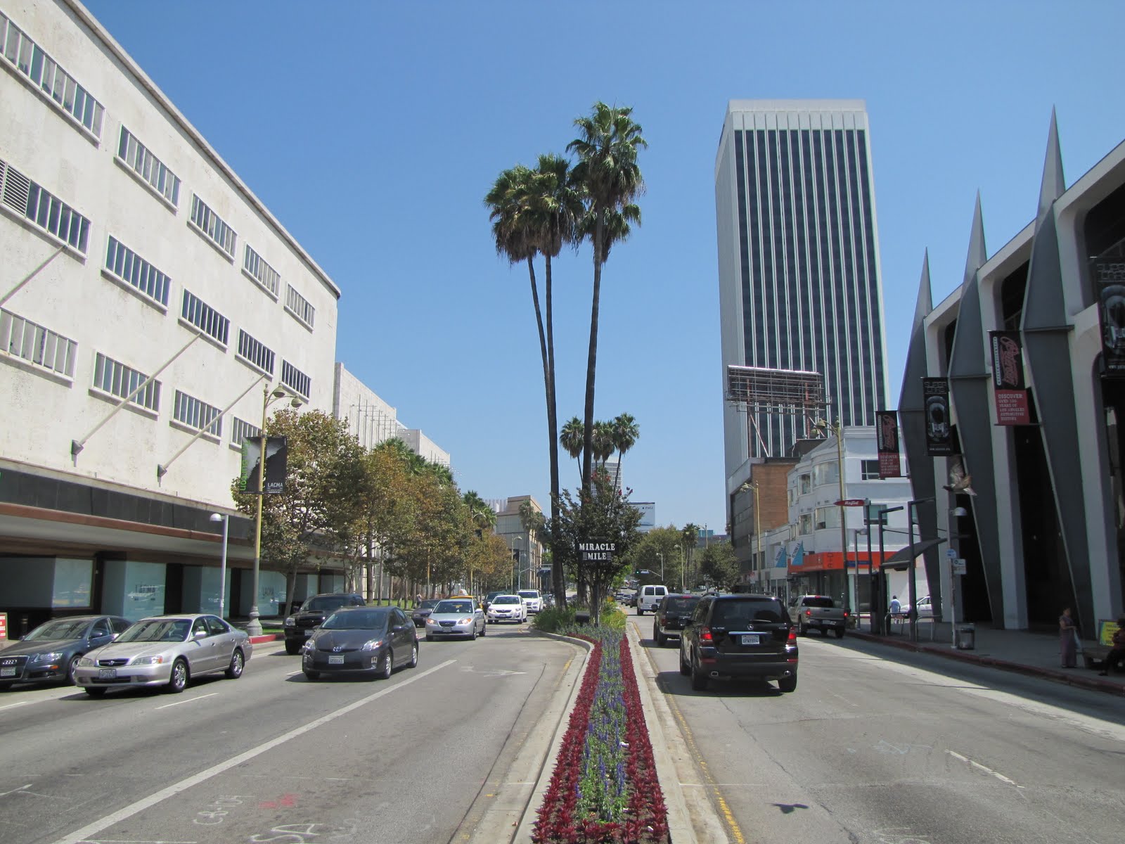 Das Automuseum und viele der anderen sind am Wilshire Boulevard, auch als Miracle Mile bekannt. Ich finde diese Architektur einfach fantastisch, konnte kaum den Finger vom Auslöser lassen. :-) Gut für mich, dass die Straße natürlich chronisch verstopft ist und ich so auch noch aus dem Auto ein paar Bilder machen konnte.